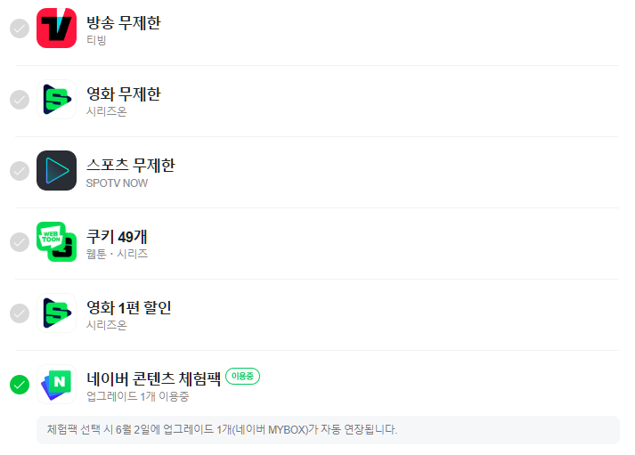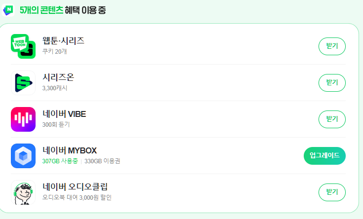 - 네이버 콘텐츠 체험팩 (MYBOX 180GB 이용권)