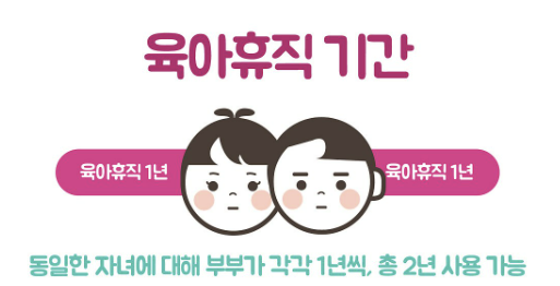 자녀 1명당 1년 사용가능하며, 자녀가 2명이면 각각 1년씩 총 2년 육아휴직을 사용할 수 있으며, 부모가 모두 근로자이면 한 자녀에 대해 아빠도 1년, 엄마도 1년 사용가능합니다. (다만 시행하는 곳이 아직 드물죠)
