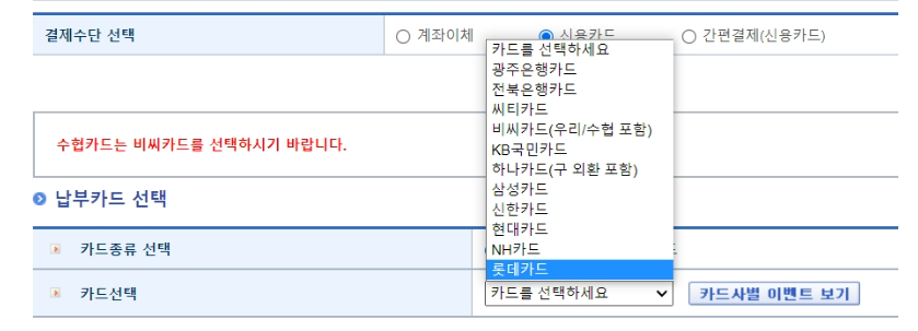 위택스 인터넷납부를 진행하다보면 자동차세 카드결제, 계좌이체, 간편결제 3가지 방법으로 진행할 수 있습니다. 간편결제로 카카오페이를 써도 되고, 평소 자주 사용하는 카드를 사용해도 됩니다. 카드사별 이벤트를 참고해서 무이자도 진행하고 있으니 할인도 받고 부담없이 자동차세 납부를 진행해봐도 되겠습니다. 저흰 1월에 못해서 좀 늦었지만 지금이라도 납부해보려고 합니다.^^