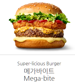 - 산체스 / 메가바이트 / 스리라차 치킨 - 멕시코 느낌을 살린 산체스, 해쉬브라운을 넣은 메가바이트, 매콤한 태국식 스리라차 소스를 더한 버거