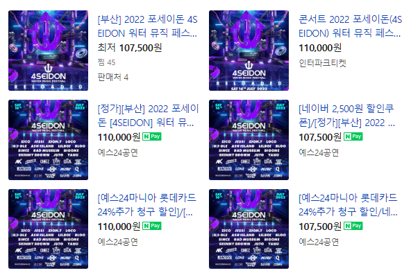 티켓 가격은 110,000원입니다. 정가이고, 각종 이벤트로 응모해서 입장권을 받으신 분들도 계실 거라 생각됩니다. 저도 무료 초대권을 좋은 기회로 받게 되었네요! 2022년 7월 16일 열리는 부산 페스티벌, 토요일을 정말 하얗게 불태울 수 있을 것 같아요.
