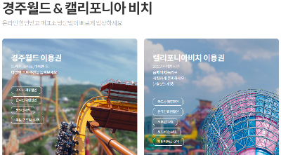 온라인 할인도 받고 매표소 방문 없이 바로 입장 가능한 경주월드 이용권, 캘리포니아 비치 이용권을 경주월드 홈페이지에 접속해서 스마트 할인 예약 코너에서 진행 가능합니다. 가고 싶은 날짜를 정하고 언제 입장할 건지 (종일권, 시간권) 정하고 나면 카드사 제휴 할인 및 다양한 할인상품들을 한눈에 볼 수 있습니다. 따라서 경주여행 계획할 때 경주월드, 캘리포니아 비치를 함께 묶어서 예산과 일정을 짜 볼 수 있거든요.