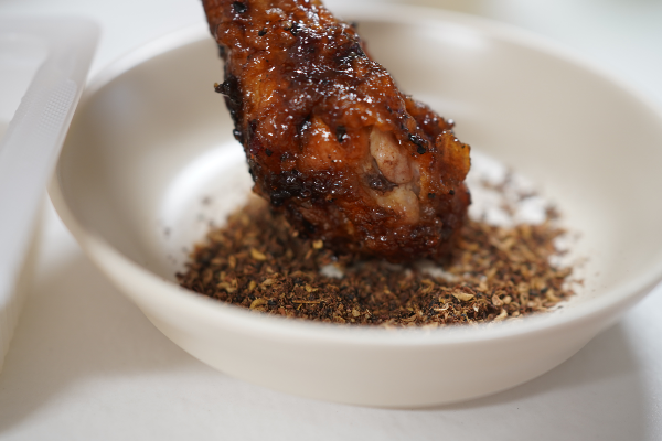 간장베이스의 양념을 한번 먹어보니 오~ 그냥 먹어도 살짝 달짝지근하기도 하고, 매콤하기도 합니다. 크게 호불호가 없을 것 같은 맛입니다. 일반적으로 떠오르는 간장치킨보다는 그 맛의 풍미가 더욱 깊은 느낌이에요. 여기에 산초가루를 콕 찍어먹는 순간 '아 뭔가 다르구나!' 하는 느낌이 든답니다. 혀 끝을 감싸는 알싸함이 확실히 다르다는 느낌을 주기 좋습니다. 맥주랑 같이 먹기에는 다소 어울리지 않을 수 있지만 밥이랑 같이 먹기에는 괜찮더라고요.