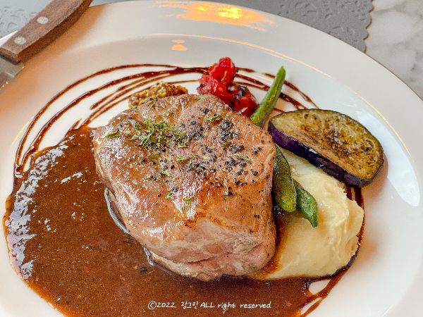 목살스테이크가 수비드 스타일로 아주 촉촉하고 가니쉬들도 멋집니다. 시금치크림리조또는 크림이 꾸덕꾸덕하고 밥알도 살아있어서 정말 맛있게 먹은 메뉴 중 하나이고요.