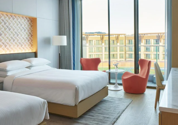 제주메리어트 숙소 가격도 나쁘지 않습니다. 킹침대의 프리미어룸은 주말기준으로 20만원대, 디럭스 스위트는 30만원 초반, 프리미어 스위트는 40만원 중후반대의 가격입니다. 제주도 5성급 호텔 중에서 다양한 액티비티를 즐길 수 있는 공간에서 8월 주말 성수기 가격이 이 정도면 제주도 숙소 추천할만합니다.