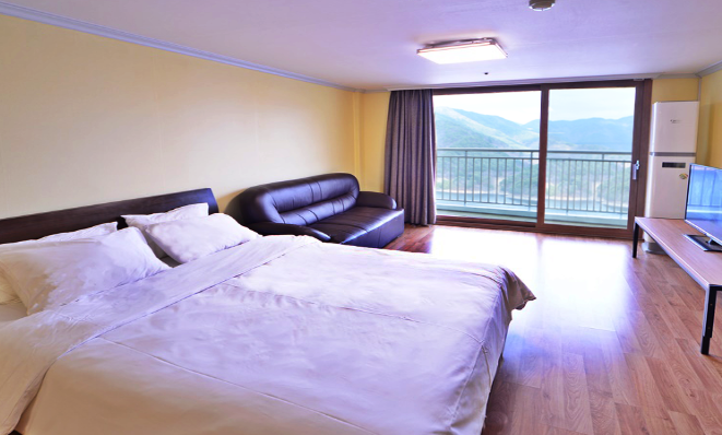 8월 성수기에도 평일에는 26평 스위트더블룸이 349,000원일 정도로 가격이 나쁘지 않습니다.