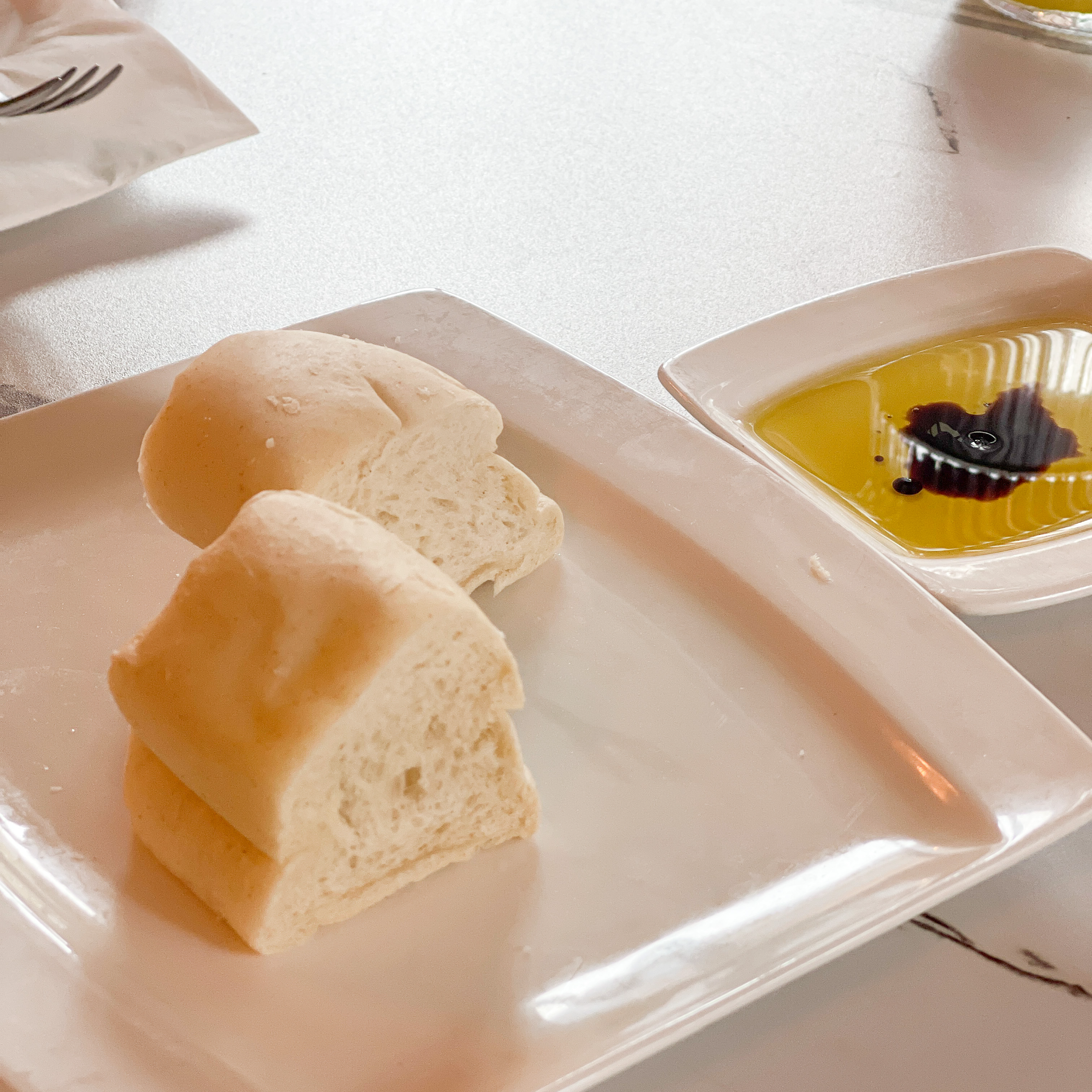 여기에 식전빵은 따뜻한 느낌의 기본빵이고 발사믹과 올리브오일을 같이 내어주셨습니다.