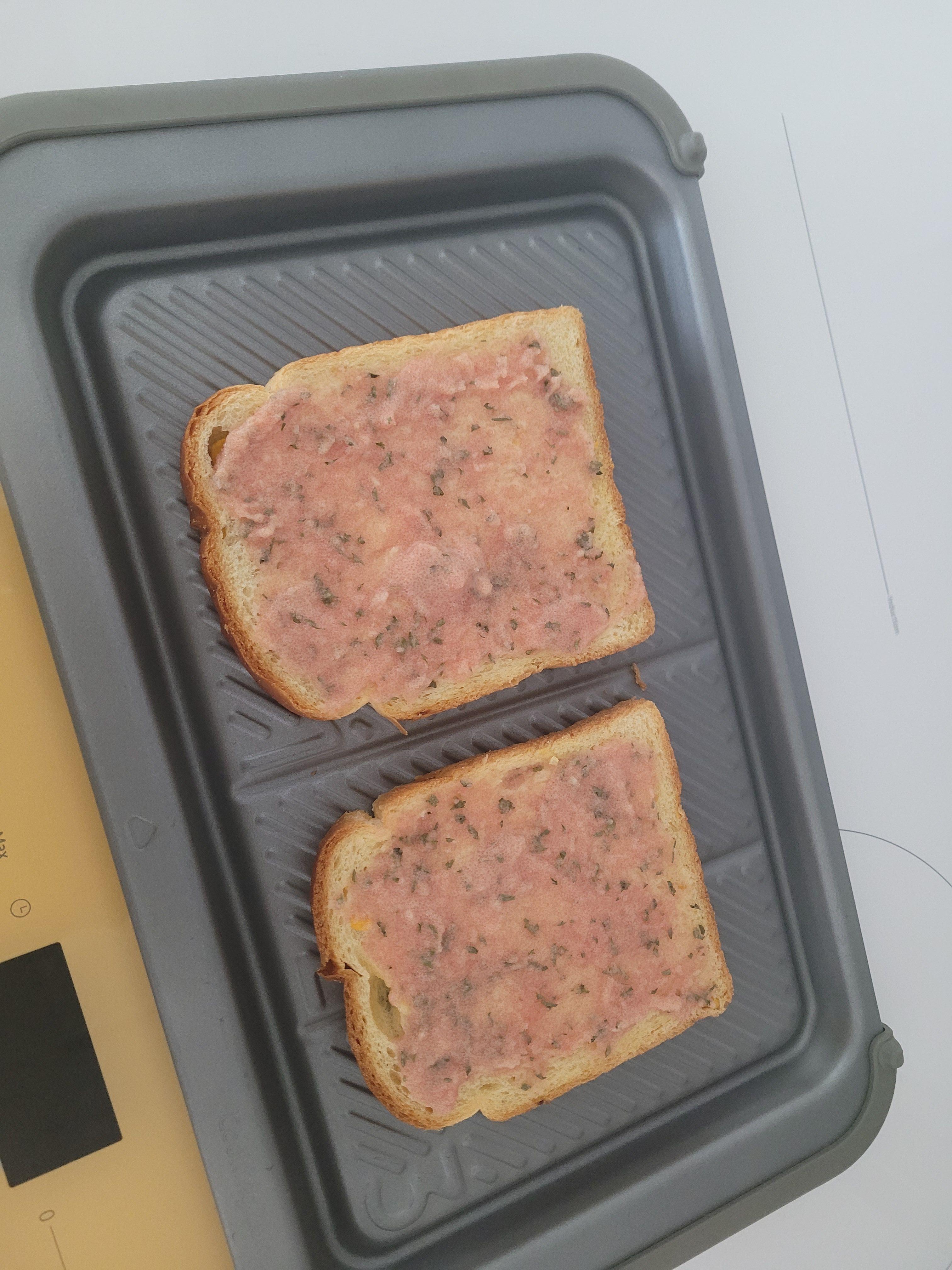 - 명란식빵 레시피 : 명란젓, 마요네즈, 다진마늘, 올리고당 올린 식빵 비스포크 큐커 에어프라이어 기능 170도 7분