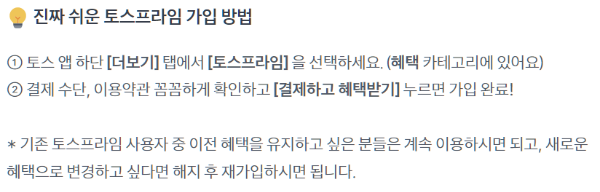 토스앱에서 우측 하단에 전체를 누르면 결제 카테고리에 토스프라임이 있습니다. 기존 토스 통장을 사용해오셨던 분이라면 계좌도 개설되어 있으시기에 바로 토스프라임에 터치 몇번이면 가입이 됩니다. 구독 서비스의 한 종류로 매월 5,900원의 비용이 발생하긴 하지만 가맹점에서 결제시 6% 적립을 지원합니다 (월 한도 20만원까지, 총 12,000원 캐시백 가능) 사용처를 보니 배달앱도 많이 켜고, 쇼핑도 자주하는 제게 딱 맞는 가맹점들이더라고요.