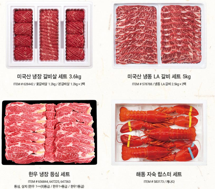 정말 많은 종류의 고기들이 준비되어 있습니다. 특히 추석을 앞두고 코스트코에서 고기를 구매하시는 분들에게는 더할나위 없이 좋은 구성이었는데요. 아무래도 1인가족, 신혼부부 가족에게는 방대한 양처럼 느껴지기도 합니다. 그럼에도 불구하고 적당히 나눠주고 선물할 생각으로 맛있는 미국산 냉장LA갈비, 갈비살세트, 한우, 자숙 랍스터세트를 코스트코 추천상품으로 꼽고 싶네요.