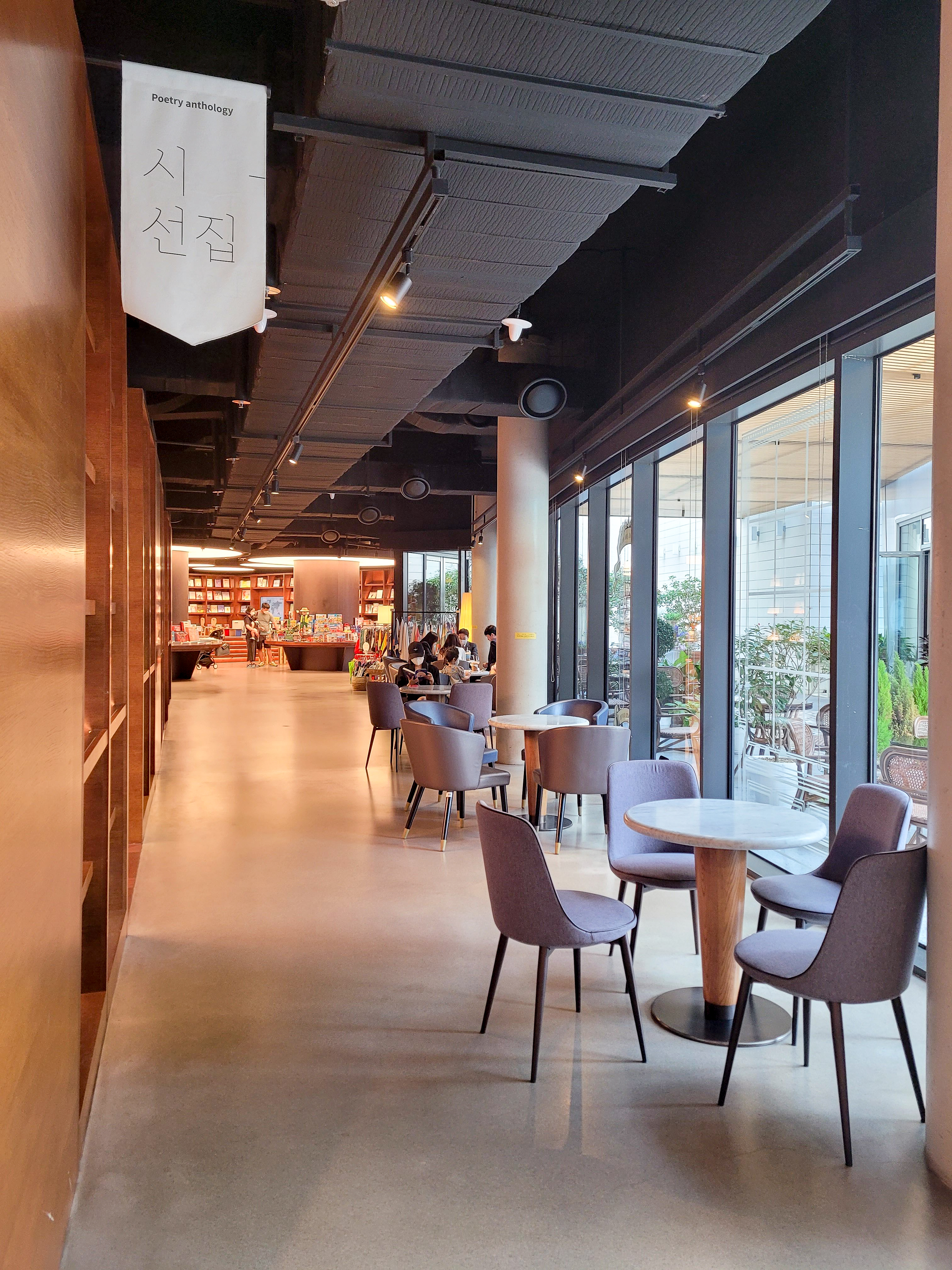 눈 앞으로 펼쳐지는 바다를 앞에 두고 테라스에서 여유를 만끽하는 사람들. 평일에는 주말보다 훨씬 느긋하게 즐길 수 있습니다. 유명한 디저트가게, 꽃집은 물론 식당가가 즐비하니 호캉스를 즐기신다면 야무지게 한 자리에서 즐겨보시면 좋을 것 같습니다. 하지만 꼭 기장 힐튼호텔에 머물지 않더라도 부산 기장 가볼 만한 곳으로 이터널 저니를 구경해도 좋은데요. 아주 고급스러운 서점이자 볼거리가 많은 공간이라서 시간 가는 줄 모르고 구경했다는 거 안 비밀입니다.