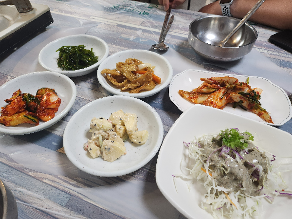 기장 무룡매운탕집의 나름 정갈한 밑반찬들이 깔려나왔습니다. 김치가 상당히 맛있어서 밥 한공기는 뚝딱하겠더라고요. 수제의 느낌 듬뿍담은 반찬들이 너무나 정갈했고 샐러드 조금씩 먹으면서 주문한 장안사매운탕이 나오길 기다려보았습니다. 오며가며 평일에도 사람들이 이렇게 많이 들리는데 주말에 기장장안사맛집 일부러 찾아오시는 분들도 상당하겠다 생각이 들었습니다.