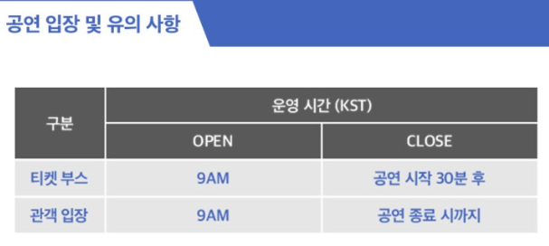 - 수령자 본인이 아닌 경우 대리수령 및 입장이 불가능 (직계가족도 불가)