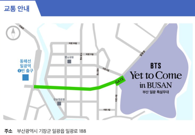 공연 중 사진 및 동영상, 온라인 중계 등 저작권을 침해하는 모든 행위를 금지한다고 하는데 그 많은 인원이 관리가 될지는 잘 모르겠습니다. 물을 제외한 일체의 음식들도 반입을 금지하며, 우천시에도 예상대로 진행이 된다고 합니다. 또한 제가 실제로 일광에 살고 있는 주민으로서 무조건 대중교통으로 이동하셔야 합니다! 차가 들어오는 순간 엄청난 정체가 예상됩니다. 공연장 내 주차공간이 마련되어 있지 않다고 하니 반드시 참고하시길 바랍니다.