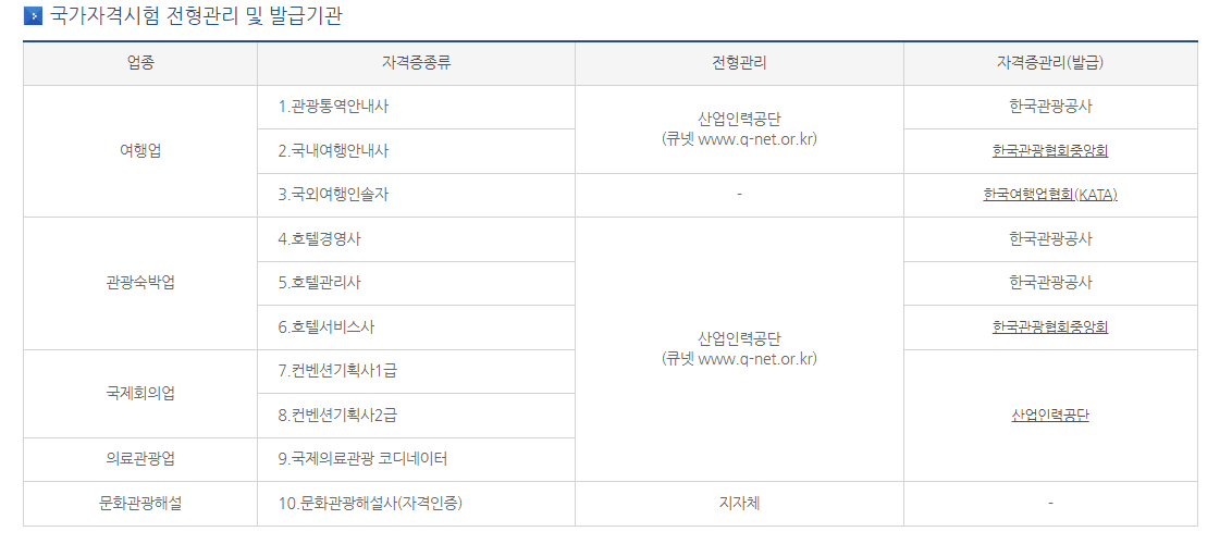 알아본 바로는 국가에서 인정하는 관광관련 자격증은 총 10가지가 있었습니다.