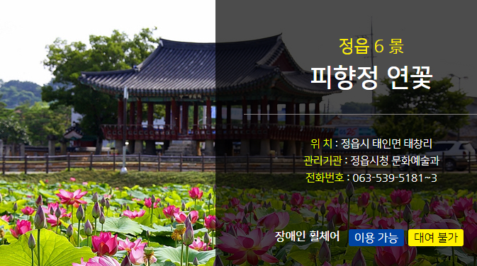 이 외에도 정읍9경에는 피향정연꽂, 정읍천벚꽃길, 정읍쌍화차거리, 백정기의사기념관이 있습니다.