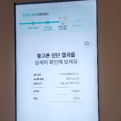 휴대폰을 안에 넣고 따로 무언가 선을 연결하지 않아도 약 3분에서 5분간 중고폰 진단이 완료됩니다. 만약 민팃 추가보상 대상자라면 "대상자로 확인된다" 라는 문구가 뜰 것이고, 갤럭시플립4 민팃 추가보상 같은 경우에는 모델에 따라 다르긴 하지만 노트20은 100,000원이 추가로 보상이 되더라고요. 그냥 파는거보다 조금이라도 더 받고 중고폰판매 하면 낫지 않을까 하는 생각에 바로 신청해두었답니다.