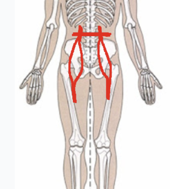임산부들 사이에서는 환도선다 테이핑 방법이 그나마 나았다라고 하는 분들이 꽤 있어서 환도선다 테이핑 방법도 알아보겠습니다. 약 50cm 정도로 자른 테이핑 3장을 준비하고, 복부의 앞쪽, 옆구리, 허리에 붙여줄 수 있는데요. 허리를 앞으로 살짝 숙여서 허리~엉덩이~허벅지가 충분히 늘어나게 한 후에 붙여주면 됩니다.