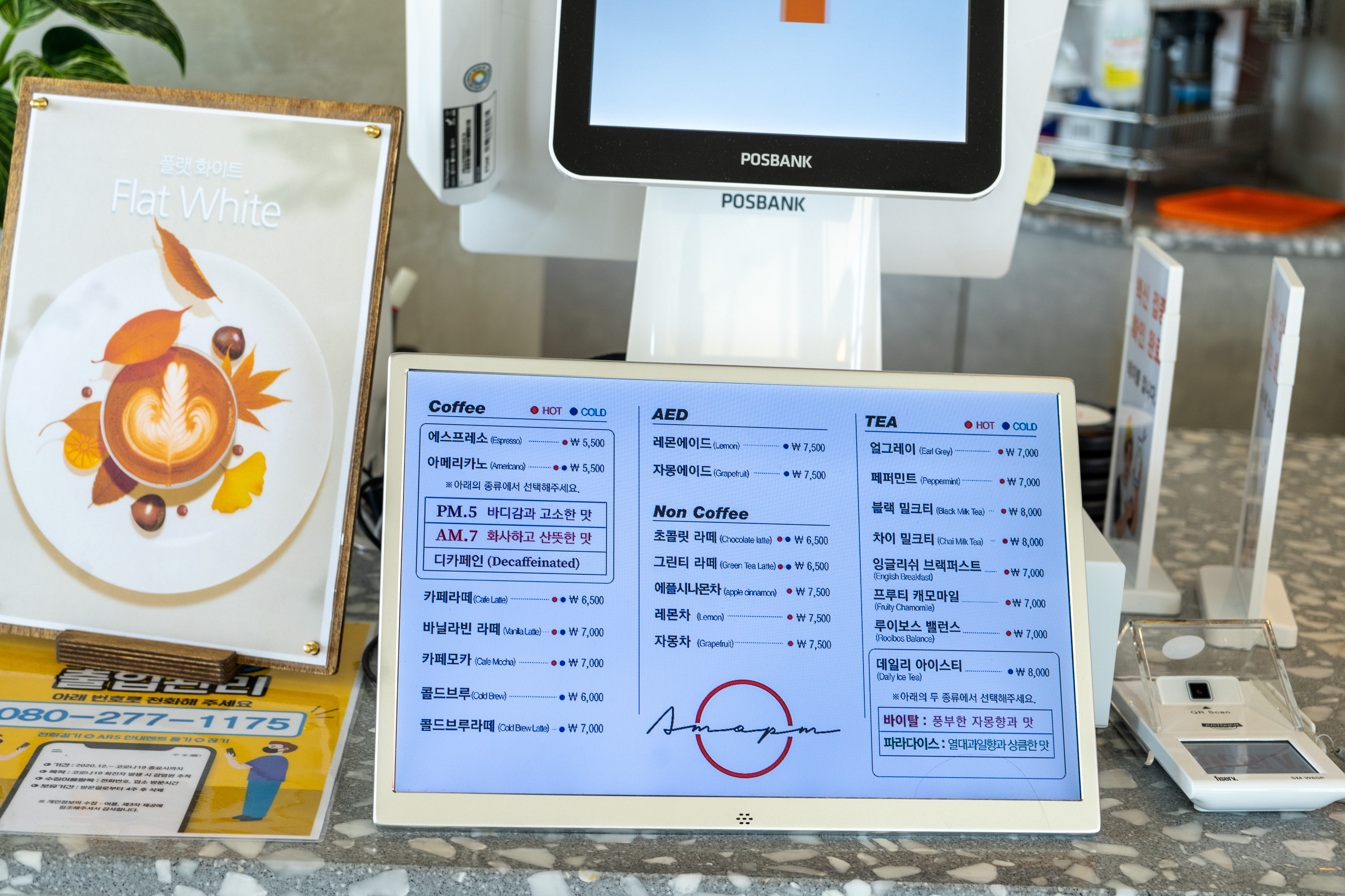 그래도 처음 먹어본거에 의의를 두었습니다. ㅎㅎ 간절곶 근처 카페 에이오피에는 이렇게 다채롭게 커피 이외에도 먹을 것들이 많으니 참고해주시면 좋겠습니다. 그리고 분위기야 뭐, 말할 것도 없이 좋았고요. 날씨가 더 좋은 날엔 푸른 바다가 루프탑 테라스에서 한 눈에 들어오지 않을까 싶습니다.