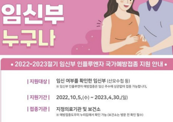 임산부 독감주사 무료 누구나 독감예방접종 합시다
