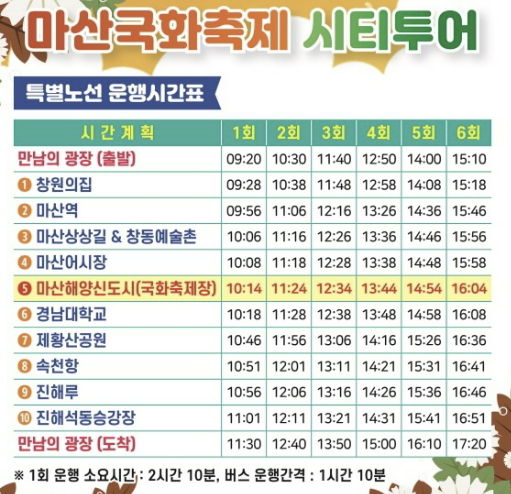 마산국화축제 시티투어 버스 이용해요