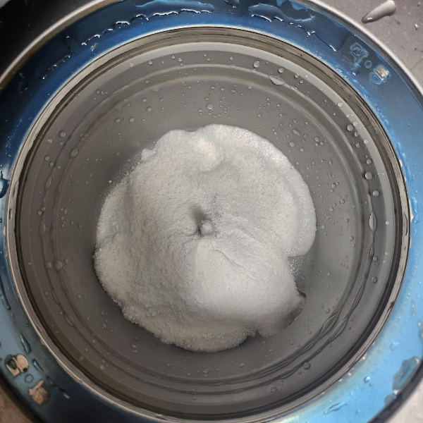 이렇게 했는데도 너무 지저분함이 지워지지 않는다 한다면 과탄산소다를 꺼냅니다. 과탄산소다 한, 두 스푼을 넣고 다시 뜨거운 물을 부어줍니다.