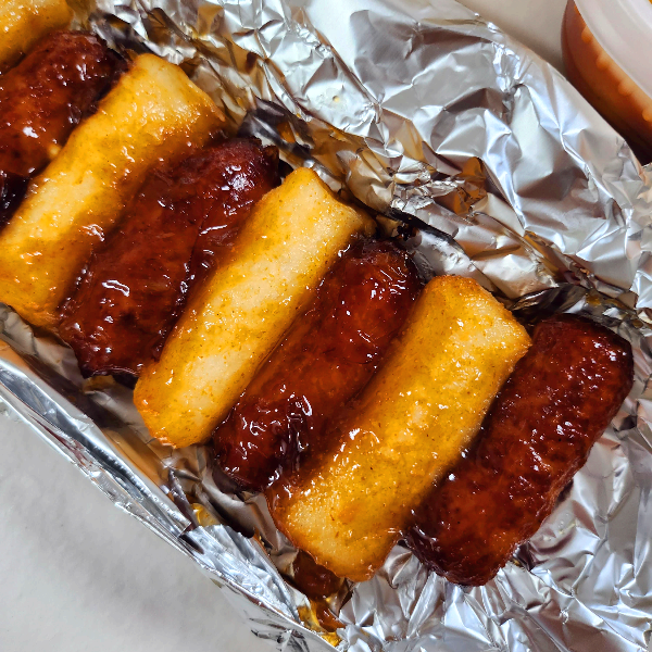 - 소세지와 떡을 기름에 살짝 구워주고 소스를 발라주면 끝