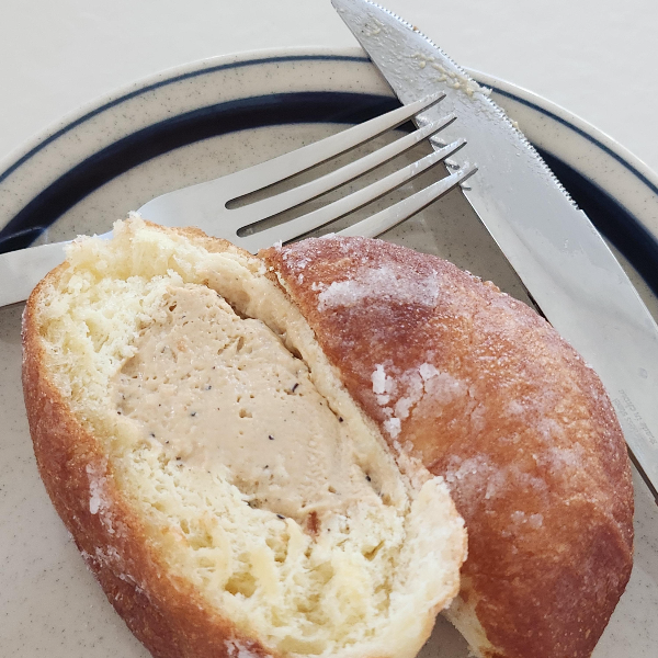 생각보다 해운대 노티드도넛에는 대부분이 포장손님이여서 2층 카페는 한가했습니다. 이것저것 주문을 하고 바로 그 자리에서 먹고 가고 싶어서 아메리카노 한 잔과 우유생크림도넛 하나를 주문해서 위에서 먹어보았습니다. 보자마자 예상되는 맛이긴 하지만 생각보다 도넛이 퐁실하고 크림은 듬뿍인데 느끼하지 않더라고요!