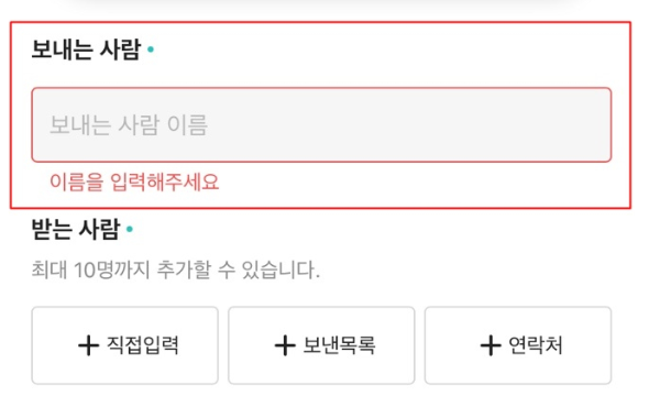 - 보내는 사람 및 받는사람 입력하기 (휴대폰번호 불러오기 가능)