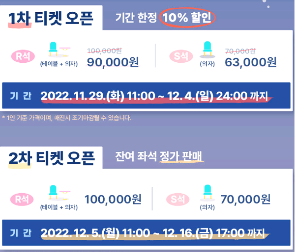 - 1차 판매분 할인가 R석 9만원, S석 6만3천원