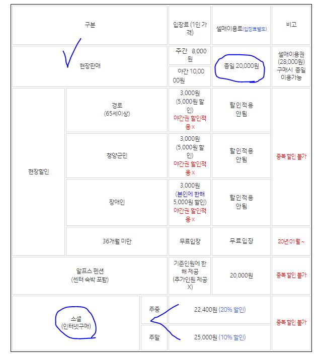 - 현장에서는 주간 8천원, 야간 1만원, 종일 2만원에 청양알프스마을 입장권요금을 지불합니다