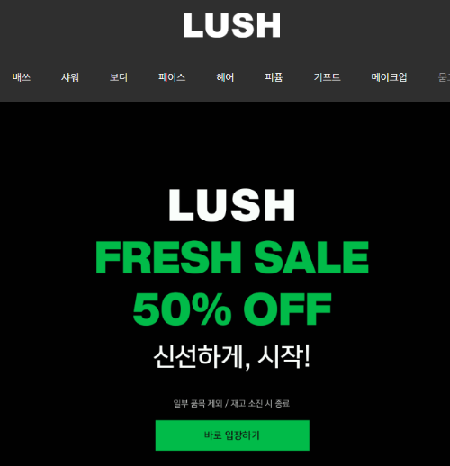 1년에 단 한번 있는 러쉬세일 2023년에도 어김없이 열립니다. 1월에 할거라 예상해서 많은 사람들이 기다렸었는데, 2월 1일부터 러쉬세일이 시작되었네요. 기한은 재고소진시까지이며 온라인과 오프라인 동시에 50% 할인을 합니다. 진행일자도 국가별로 다 다르고, 일부 제품은 제외되긴 하지만 러쉬 프레쉬 50% 세일은 반값이기 때문에 무조건 이득입니다.
