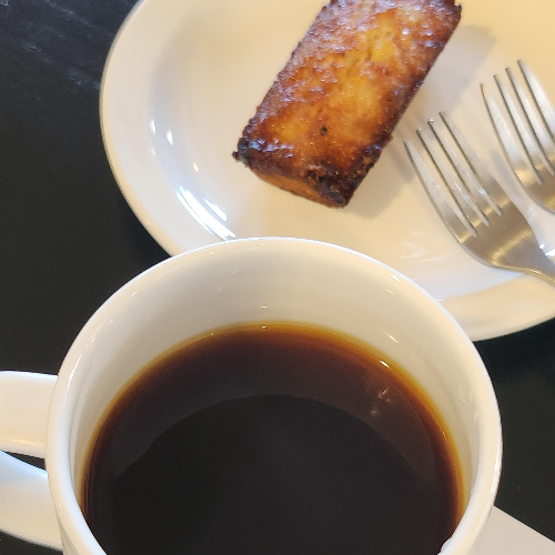 광안리 노아브루어스에서는 원두도 판매하고 있고, 핸드드립은 3가지 원두가 준비되어 있었는데 콜롬비아, 엘살바도르, 멕시코산타크루즈였습니다. 저는 콜롬비아 (망고, 밀크티, 베르가못) 원두를 선택해서 마셨고 가격대비 맛도 괜찮았습니다. 디저트는 간단하게 휘낭시에 등이 준비가 되어있고, 저희도 달콤한 휘낭시에를 하나 나눠먹었는데 맛있었어요.