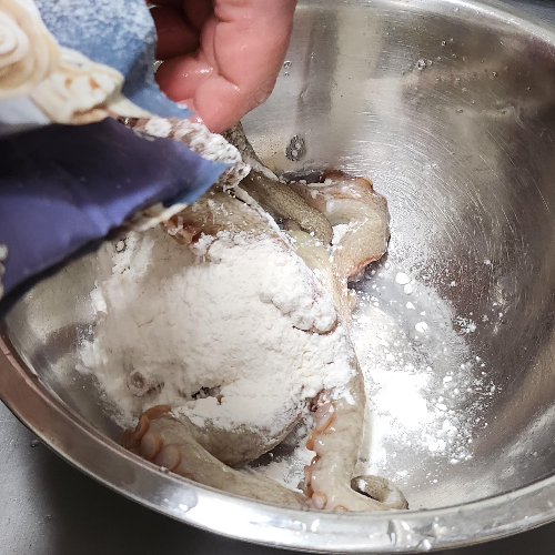 일단 깨끗하게 씻기 위해서 밀가루를 좀 뿌리고 박박 문질러주고 여러번 헹궈서 불순물을 제거해주었습니다.