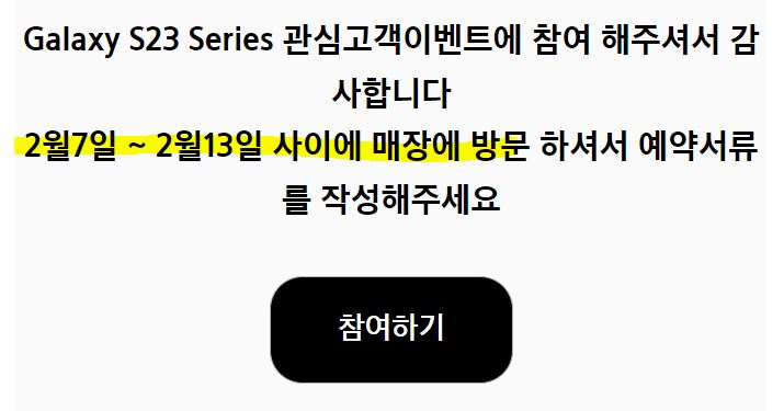 samsungsales.co.kr 에서 이벤트 참여 신청을 받고 있더라고요. 구매할 제품, 자급제폰 여부 체크하고, 매장 및 예약신청을 한 다음에 관심고객 이벤트에 참여를 미리 해두세요. 이후 주말사이에 예약서류를 작성해서 원하는 삼성S23 구매 해보시길 바라겠습니다! 증정되는 스마트싱스 스테이션이 궁금하시면 추가 포스팅도 살펴보세요. 감사합니다.