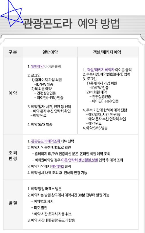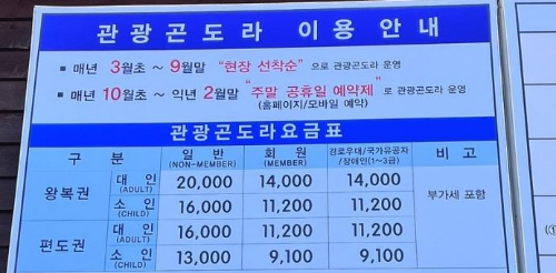 - 3월부터 9월 사이에는 주중 주말, 영업시간 내 현장발권 (예약서비스 없습니다)