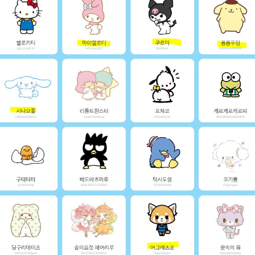 제가 초등학생때 헬로키티, 고라파덕을 정말 좋아했는데요. 세월이 20년이 지난 지금은 헬로키티 이외에 산리오 캐릭터들이 많이 늘어났더라구요. 마이멜로디, 쿠로미, 폼폼푸린, 시나모롤, 포차코 등 한번 보니 저 역시 너무 캐릭터들이 귀여워서 반할 것 같았습니다. 마이멜로디와 시나모롤, 쿠로미의 인기가 압도적으로 많은 것 같더라고요.
