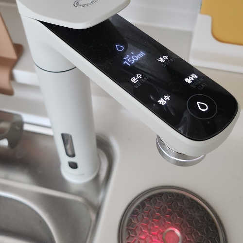 인테리어 효과도 있어요. 출수구가 조금 더러워진 경우에 화면에 출수구를 닦아달라는 문구가 떠서, 살짝 마른헹주로 닦아주고 있답니다.