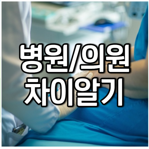 의원과 병원은 그 규모에서 차이가 납니다. 입원할 수 있는 병상수가 30개가 이상이면 병원이고, 그 이하이면 의원으로 구분합니다. 종합병원은 병상 100개를 갖추면서, 의료법 제 1장 제3조 의료기관에 따라 필수 진료과목 7개를 갖춰야합니다.