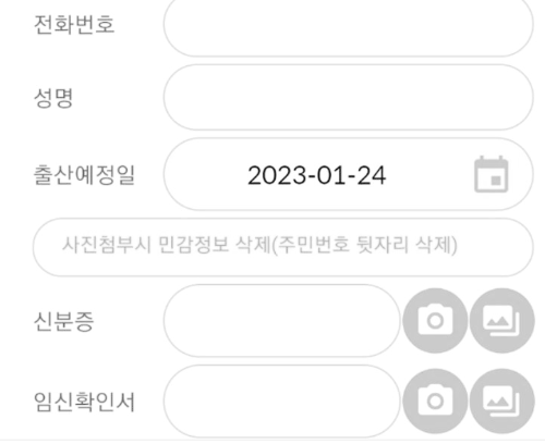 - 회원가입 진행 (임신확인서로 임신증명을 해야 함)