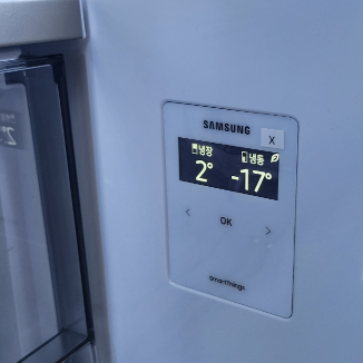 저희가 해놓은 것 처럼 과일/채소도 가능합니다. 냉장온도, 냉동온도 역시 1도씩 조절이 가능한데 기사님께서 최초 설정해준 그대로 냉장2도, 냉동-17를 유지하고 있습니다.