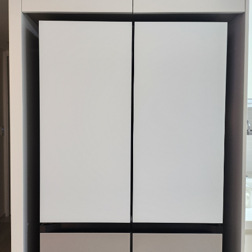 저희가 구매할 당시 운 좋게도 새틴화이트 패널이 새로 나왔어서 고를 수 있었는데요. 이전에 삼성냉장고 비스포크 코타화이트 패널이 상당히 유행이었는데, 이름은 화이트이나 회색빛이 살짝 돌아서 조금 아쉬웠었거든요.