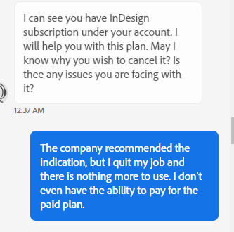 돈 돌려달라는데 그럼에도 불구하고, 어도비 인디자인을 3개월 동안 써보라고 합니다. "네가 3개월을 쓴다면 우리는 잘 사용할 수 있게 학습 표도 보내주고 블라블라" 어쨌든 구독해지하지 말고 써보라고 어도비 상담원은 회유를 합니다.
