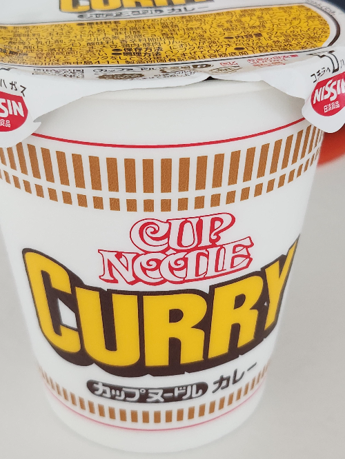 닛신컵누들 맛은 커리맛인데, 말 그대로 카레맛과 향이 진하게 납니다. 그리고 한국 컵라면과 다른 점은 무척이나 토핑이 많이 들어있었어요. 물 300ml 넣어서 3분 기다렸다가 먹으면 되는 일본 컵라면, 면을 들어올릴 때 마다 건더기가 같이 올라오는 느낌이 인상적입니다. 그리고 물만 부었는데도 이렇게 꾸덕하고 농도짙은 컵라면을 만들 수 있다는게 신기했답니다.