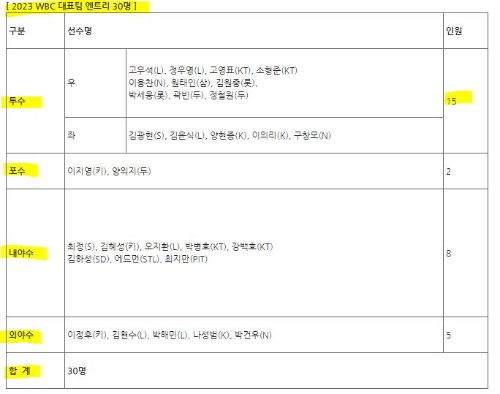SSG 2명, 키움 3명, LG 6명, KT 4명, KIA 3명, NC 3명, 삼성1명, 롯데2명, 두산3명, 한화0명, 해외3명으로 구단별 인원이 뽑혔네요. 감독은 이강철, 타격코치 김기태, 작전코치에 김민호, 김민재, 배터리코치에 진갑용, 투수코치에 정현욱, 불펜코치 배영수, 퀄리티컨트롤 코치에 심재학입니다.