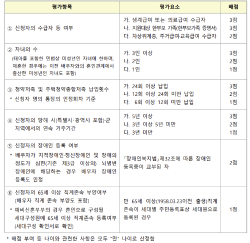 - 신혼희망타운(공공분양) 자산기준 충족- 총자산 37,900만원 아래의 배점을 합산하여 총점이 높은 순으로 입주대상자를 선정하되, 동일 점수인 경우 다음 각 호의 순서에 따라 점수가 높은 순으로 입주대상자 선정(경합 발생 시 추첨으로 우선순위 결정)