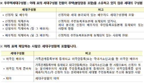 - 신혼부부 2유형 : 신혼부부, 예비신혼부부, 한부모가족, 유자녀혼인가구, 혼인가구