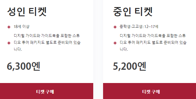 접속 후 10분 이내에 예매를 끝마쳐야 하고, 어느정도의 웨이팅이 있으니 인내심을 가지고 기다려야 합니다. 예매를 하면서 일자와 원하는 시간대를 결정할 수 있습니다. 추가로 구매하고자 하는 옵션 (공식 가이드북 2,500엔) 등을 미리 생각해두시면 더욱 빠르게 구매할 수 있습니다.