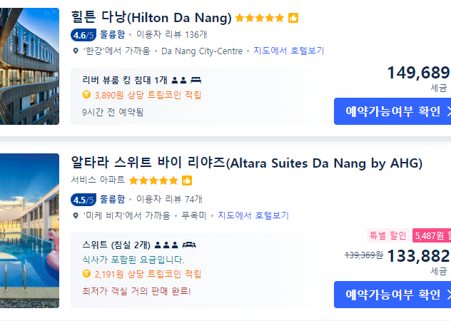 이왕 다낭 여행을 가기로 계획중이라면 자유여행으로 계획세워본 호텔 가격들과 식비들을 비교, 또 다양한 여행사에서 제공하고 있는 패키지 구성을 함께 살펴보고 더 저렴한 쪽으로 하시는 편을 추천드립니다.