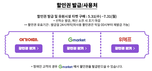 놀이공원 할인대전은 예약접수 및 할인적용기간이 2023년 5월 31일 - 7월 31일 입니다.